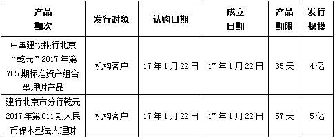 中国建设银行北京市分行定于2017年1月22日发行理财产品,现将相关发行情况公告如下:
