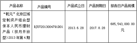 我行依照《中国银监会关于规范商业银行理财业务投资运作有关问题的通知》(银监发【2013】8号)要求,现对"乾元"北京区域定制资产组合型保本人民币理财产品(按月开放型)2013年第4期投资非标准化债权资产清单披露如下: