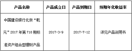 关于中国建设银行北京“乾元”2017年第718期标准资产组合型理财产品成立的公告