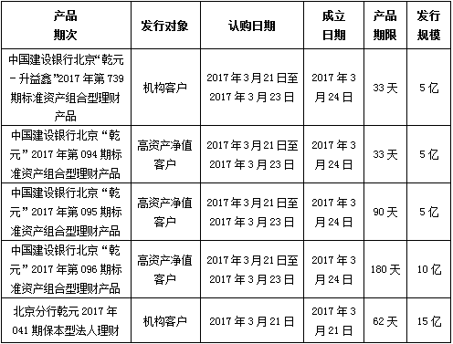 中国建设银行北京市分行定于2017年3月21日发行理财产品,现将相关发行情况公告如下:
