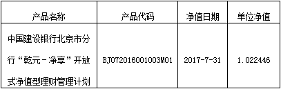 中国建设银行北京市分行“乾元-净享”开放式净值型理财管理计划净值公布如下: