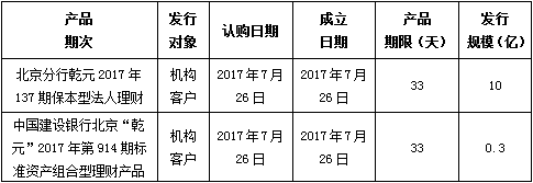 中国建设银行北京市分行定于2017年7月26日发行理财产品,现将相关发行情况公告如下: