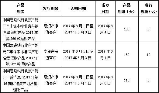 中国建设银行北京市分行定于2017年8月1日发行理财产品,现将相关发行情况公告如下: