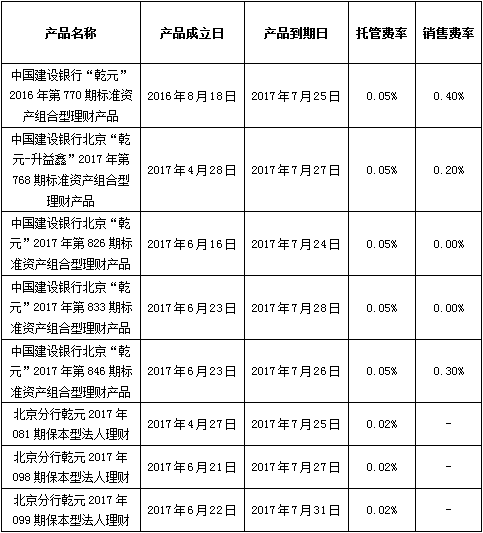 中国建设银行对公类理财产品终止及清算公告2017年7月28日