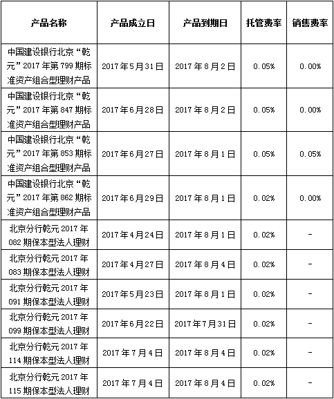 根据与投资者的约定,中国建设银行发行的下列理财产品已经到期并完成资金兑付,现将有关情况公告如下: