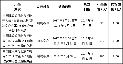 中国建设银行北京市分行定于2017年8月30日发行理财产品,现将相关发行情况公告如下: