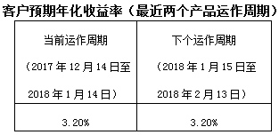 下个运作周期客户预期年化收益率于2018年1月15日(含)开始执行。