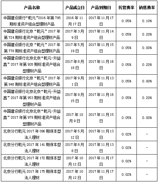 中国建设银行对公类理财产品终止及清算公告2017年11月17日