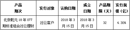 中国建设银行北京市分行定于2018年3月15日发行理财产品,现将相关发行情况公告如下: