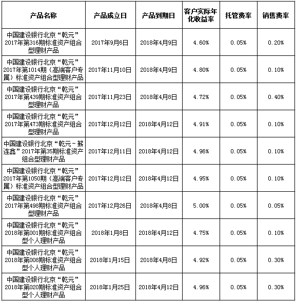 根据与投资者的约定,中国建设银行发行的下列理财产品已经到期并完成资金兑付,现将有关情况公告如下: