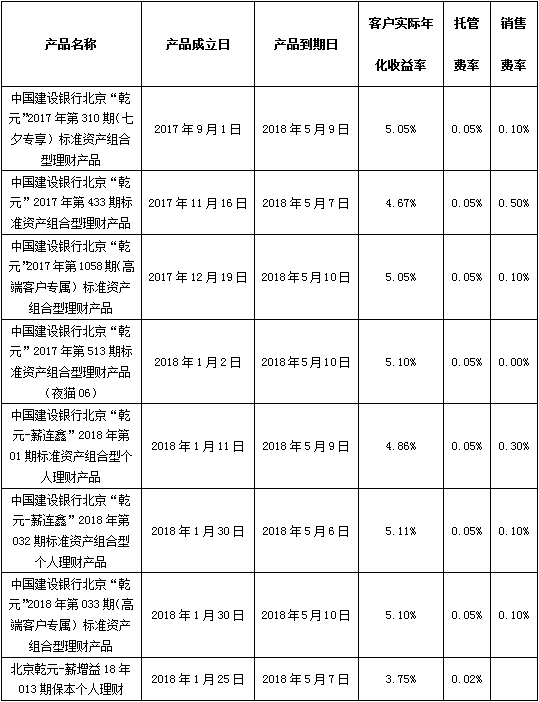 根据与投资者的约定,中国建设银行发行的下列理财产品已经到期并完成资金兑付,现将有关情况公告如下: