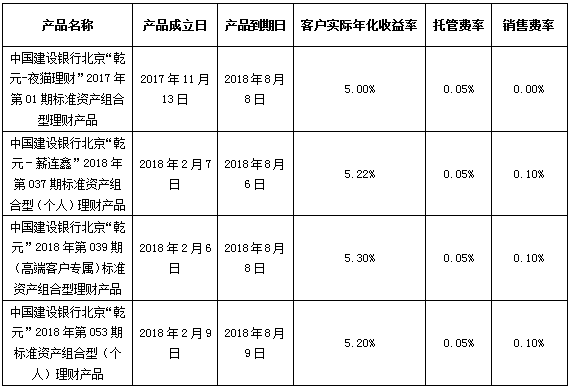 中国建设银行个人类理财产品终止及清算公告2018年8月10日
