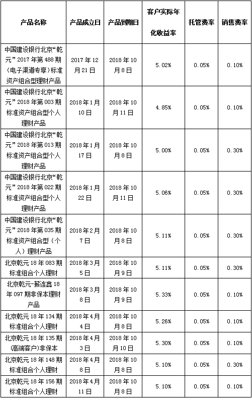 中国建设银行个人类理财产品终止及清算公告2018年10月12日