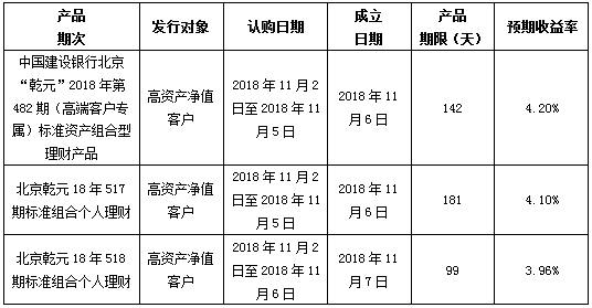 中国建设银行北京市分行定于2018年11月2日发行理财产品,现将相关发行情况公告如下: