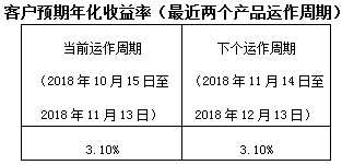 下个运作周期客户预期年化收益率于2018年11月14日(含)开始执行。