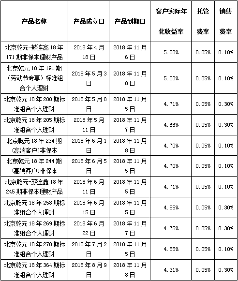 注:上述产品按照说明书中关于资产的投资类型和比例的约定进行投资,所投资非标准化债权资产已进行披露,产品运作收益超出客户实际年化收益率、托管费率及销售费率的部分将作为产品的浮动管理费用。特此公告。