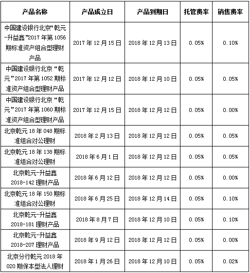 根据与投资者的约定,中国建设银行发行的下列理财产品已经到期并完成资金兑付,现将有关情况公告如下: