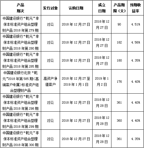 建行北京市分行理财产品发行公告2018年12月27日