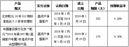 中国建设银行北京市分行定于2019年1月11日发行理财产品,现将相关发行情况公告如下:
