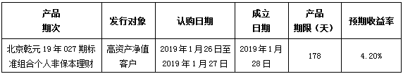 中国建设银行北京市分行定于2019年1月26日发行理财产品,现将相关发行情况公告如下: