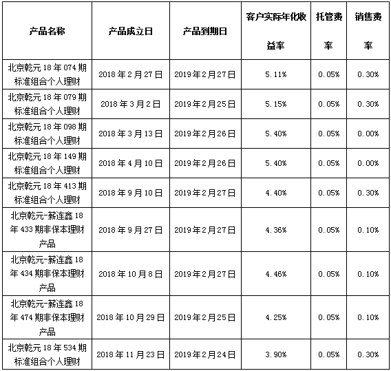 注:上述产品按照说明书中关于资产的投资类型和比例的约定进行投资,所投资非标准化债权资产已进行披露,产品运作收益超出客户实际年化收益率、托管费率及销售费率的部分将作为产品的浮动管理费用。特此公告。