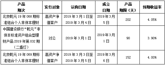 建行北京市分行理财产品发行公告2019年3月1日