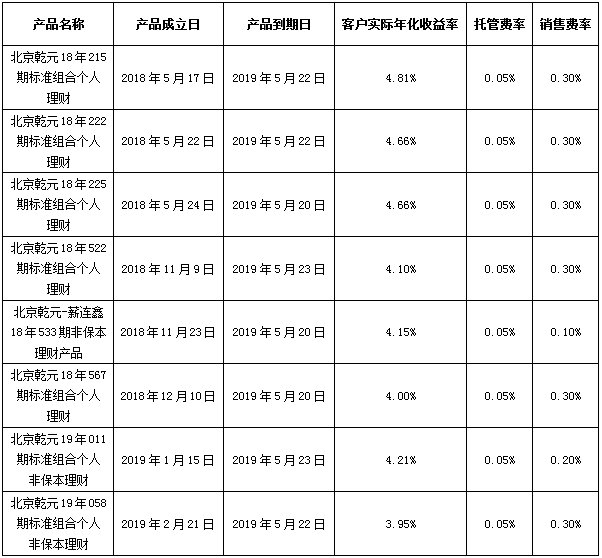 注:上述产品按照说明书中关于资产的投资类型和比例的约定进行投资,所投资非标准化债权资产已进行披露,产品运作收益超出客户实际年化收益率、托管费率及销售费率的部分将作为产品的浮动管理费用。特此公告。