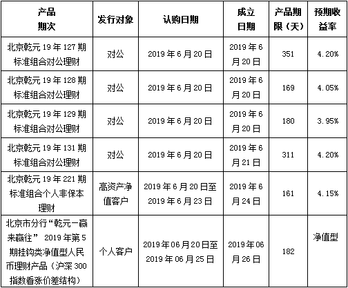 中国建设银行北京市分行定于2019年6月20日发行理财产品,现将相关发行情况公告如下: