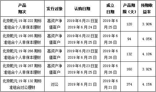 建行北京市分行理财产品发行公告2019年6月21日