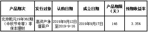 中国建设银行北京市分行定于2019年9月12日发行理财产品,现将相关发行情况公告如下: