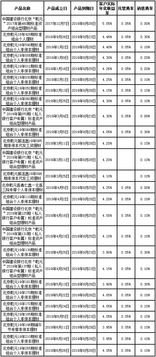 根据与投资者的约定,中国建设银行发行的下列理财产品已经到期并完成资金兑付,现将有关情况公告如下: