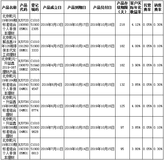 中国建设银行理财产品终止及清算公告2019年10月18日