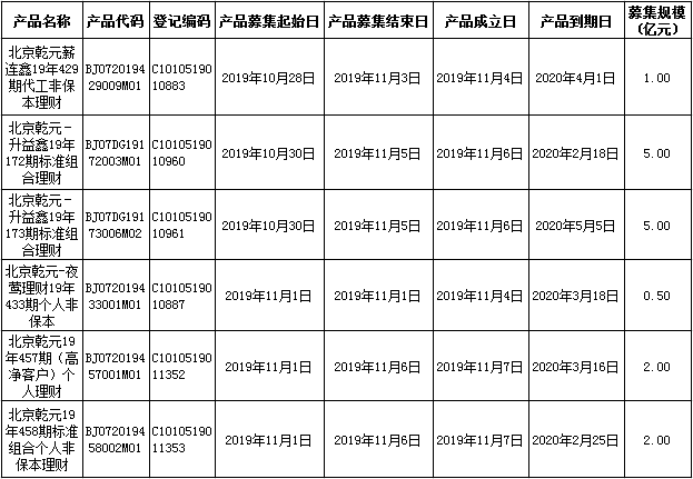 中国建设银行理财产品成立公告2019年11月8日