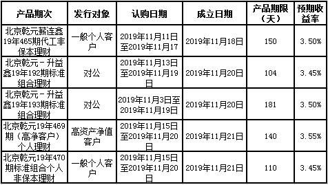 中国建设银行北京市分行定于2019年11月11日至11月15日发行理财产品,现将相关发行情况公告如下: