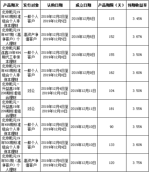 中国建设银行北京市分行定于2019年12月2日至12月6日发行理财产品,现将相关发行情况公告如下:
