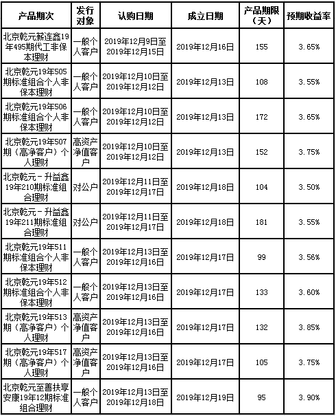 中国建设银行北京市分行定于2019年12月9日至12月13日发行理财产品,现将相关发行情况公告如下: