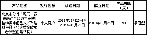中国建设银行北京市分行定于2019年12月23日发行理财产品,现将相关发行情况公告如下: