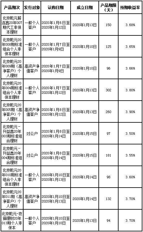 中国建设银行北京市分行定于2020年1月6日至1月10日发行理财产品,现将相关发行情况公告如下: