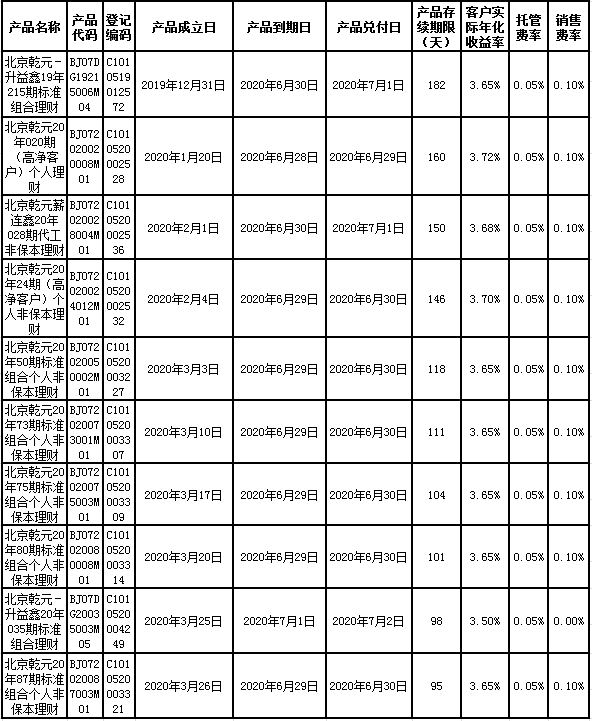 中国建设银行理财产品终止及清算公告2020年7月6日