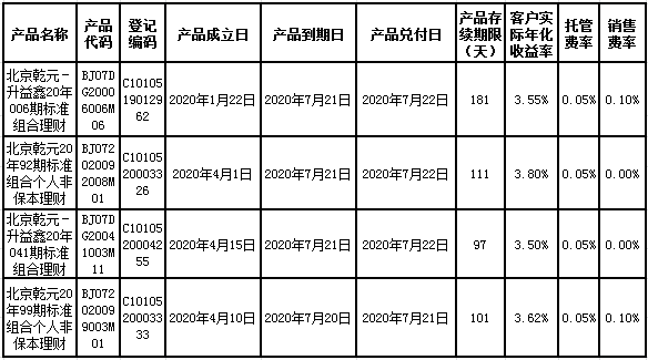 中国建设银行理财产品终止及清算公告2020年7月27日