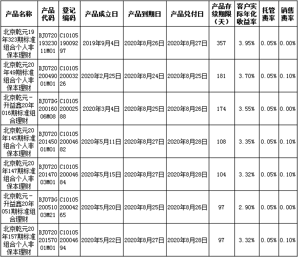 中国建设银行理财产品终止及清算公告2020年8月31日