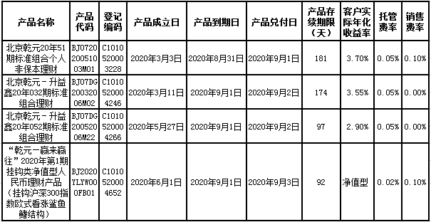 中国建设银行理财产品终止及清算公告2020年9月7日
