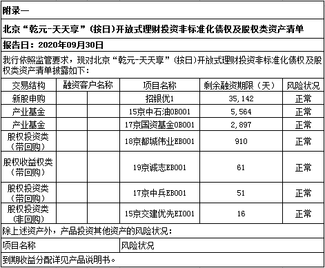 “乾元-天天享”(按日开放型)人民币非保本理财产品于2016年5月11日正式成立。截至报告日,本产品规模为18,819,651,753.79元。