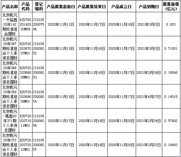 中国建设银行理财产品成立公告2020年11月23日