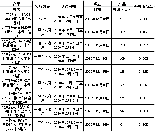 建行北京市分行理财产品发行公告2020年12月14日