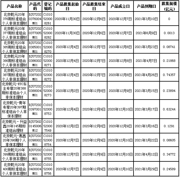 中国建设银行理财产品成立公告2020年12月14日