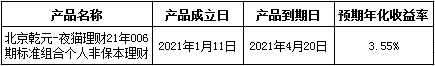 理财产品非标资产披露及资产质量变化公告2021年1月11日