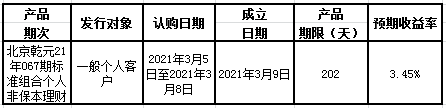 中国建设银行北京市分行定于2021年3月1日至2021年3月5日发行理财产品,现将相关发行情况公告如下: