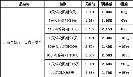 关于调整中国建设银行股份有限公司北京市分行“乾元-日鑫月溢 ”(按日)等开放式资产组合型人民币理财产品客户预期年化收益率的公告